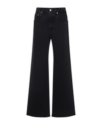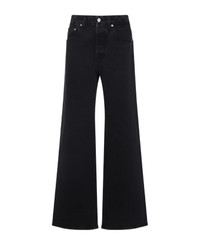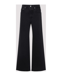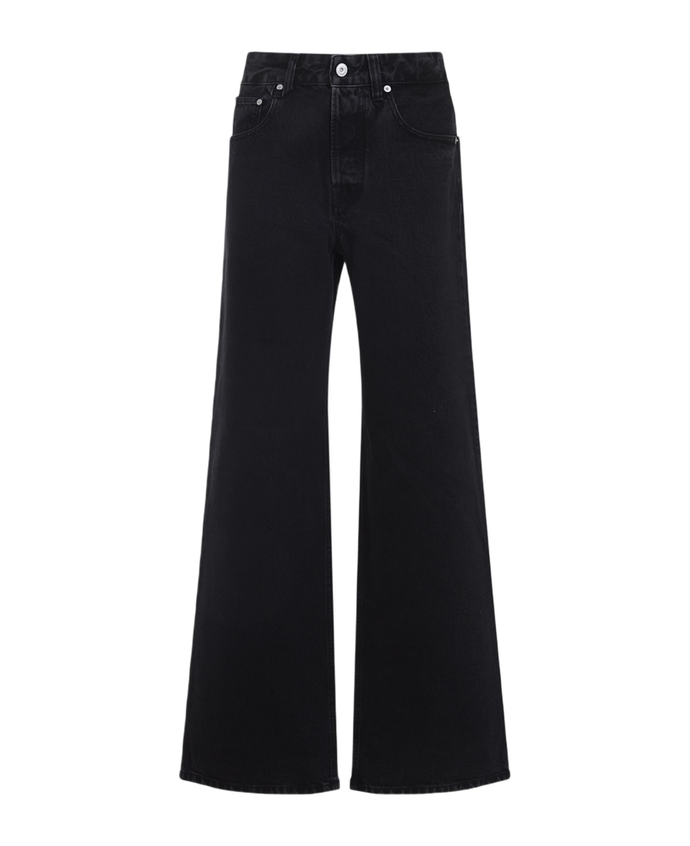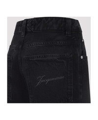 Jacquemus Le De-Nimes Large Black Cotton Jeans. Crafted from black cotton denim, high-rise, belt loops, front J belt loop detail, 5-pocket design, front button fly fastening, lasered logo at the back pocket, long wide leg. Made in: Italy Color: Black Model number: PAW00036AD00039990