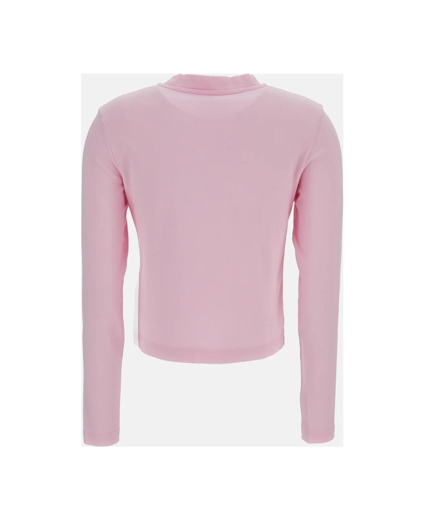 Long-sleeve T-shirt in stretch cotton Ribbed crew neck Cropped cut Grosgrain logo embroidered on the chest Color: pink Composition: 94% Cotton, 6% Elastane Made in: Portugal Color: Pink Model number: TSW00155AJ00124431