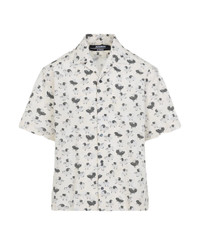 Jacquemus Le Jean Light Beige Cotton Shirt. Crafted from light beige cotton poplin, signature duck print all over, pointed collar, front mother-of-pearl button fastening, dropped shoulders, short sleeves, straight hem, relaxed fit. Made in: Portugal Color: Beige Size and fit: - This piece fits true to size. We recommend you get your regular size - Model is 1,84m / 6ft 1in wearing size 48 (IT) Model number: SHM00200BW006911KK