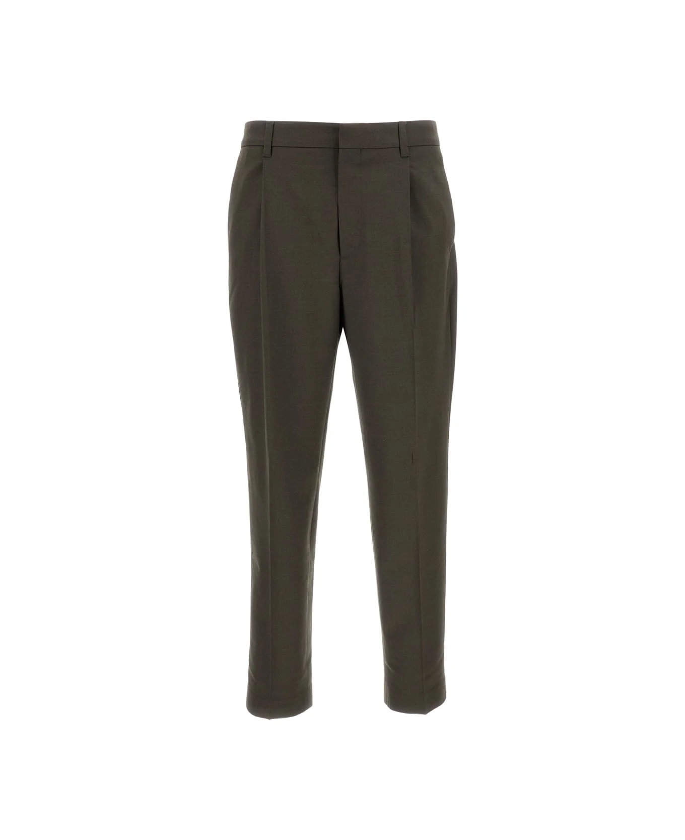 Inner lining: cotton (55%) and polyester (45%) blend for the inner lining. Cut/silhouette: mid-rise waist, slim leg, pressed crease, ankle length. Pockets: slanted front pockets; back welt pockets with flap and button. Closure: zip + hook + button on the front flap. Distinctive details: belt loops including one with the letter J ; well-defined crease for a tailored look. Made in Italy Composition: 95% Virgin Wool, 5% Virgin Wool Made in: Italy Color: Green Model number: PAM00544AW00670580