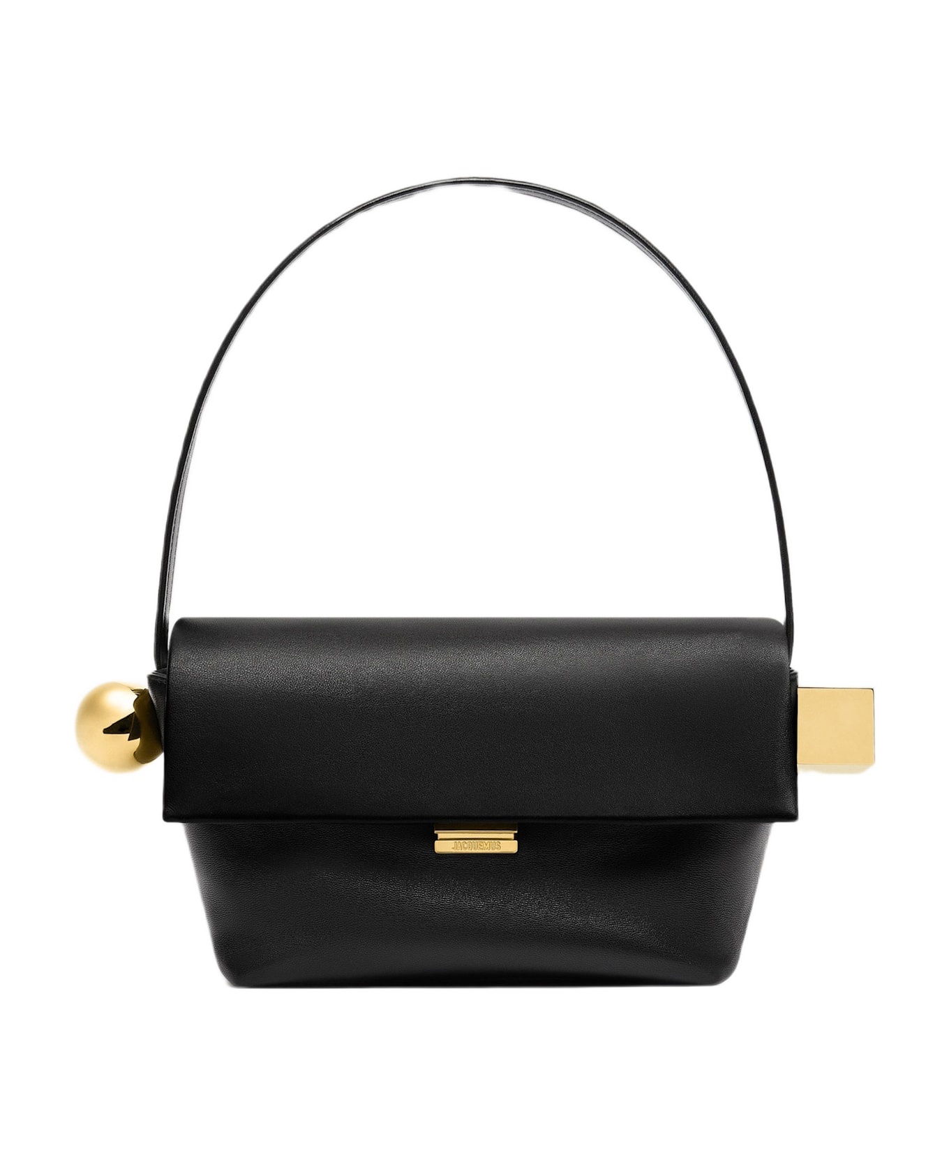 Silver metal circle clasp ends and gold metal square large. Magnetic closure. Inside pocket for credit cards. Gold metal trim and logo. Color: black. Composition: 100% Lamb Leather Made in: Italy Color: Black Size and fit: - W - Length: 27.5 cm (36 cm when opened)  x H x D cm handle - - Height: 14.5 cm  Model number: BAW00383AC27L14990
