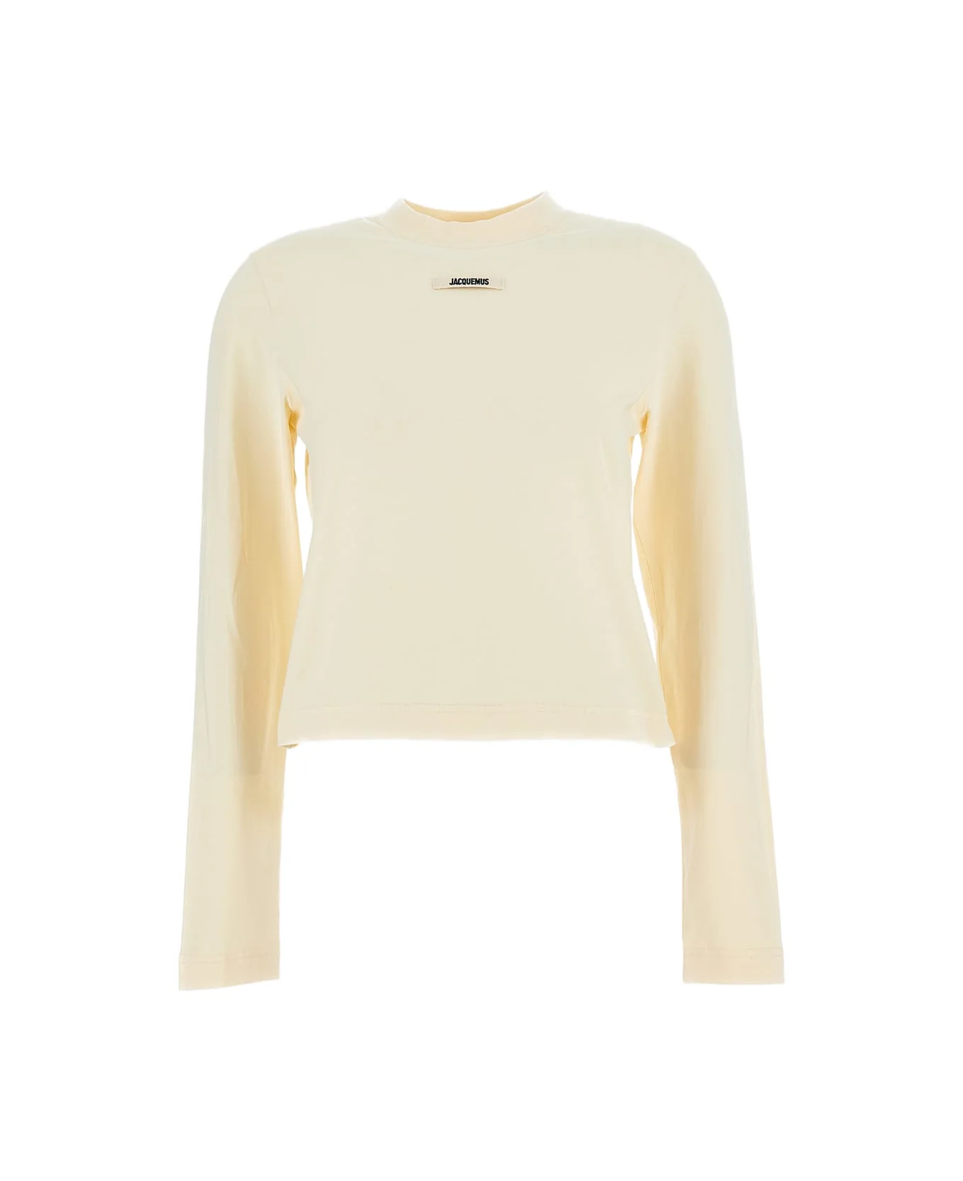 Long-sleeved crew neck T-shirt Stretch cotton fabric Logo stitched on the chest Cropped cut, slim fit Color: cream Composition: 94% Cotton, 6% Elastane Made in: Portugal Color: Beige Model number: TSW00155AJ00124130