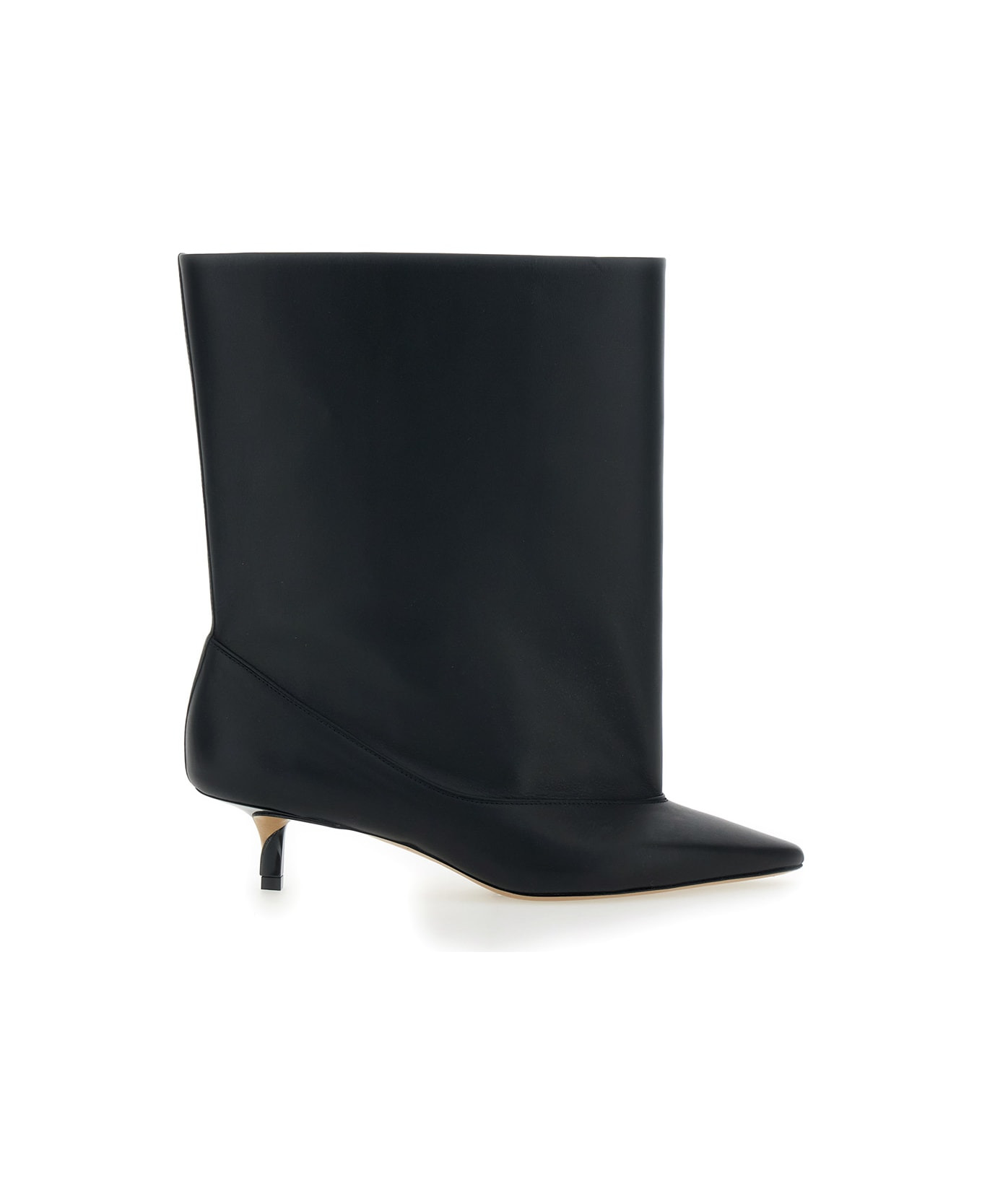 'les Bottes Tourni' Black Ankle Boots With Pointed Toe And Low Stiletto Heel In Leather Woman