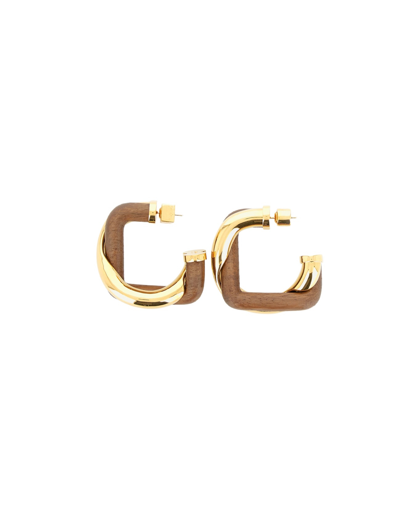 Twisted hoop earrings in silver- and gold-plated brass. Smooth finish, round and square butterfly clasps with engraved logo, made in Italy. Composition: 100% Brass Made in: Italy Color: Golden Model number: JWW00760AMMW001282