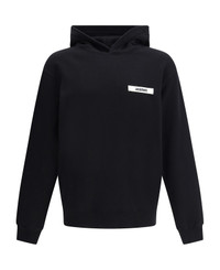 Soft cotton hoodie by jacquemus, with a fleece interior for extra comfort. it features a logo patch on the front that adds a distinctive touch to the design. ribbed cuffs and hem complete the garment, ensuring a snug and comfortable fit. perfect for a casual and trendy look. Composition: 100% % Cotton Made in: Portugal Color: BLACK Size and fit: - chest: 116.0 centimetres, sleeve length: 69.0 centimetres, length: 67.0 centimetres, shoulder width: 52.0 centimetres Model number: HOM00247AJ00126