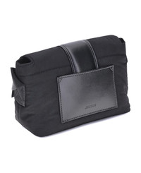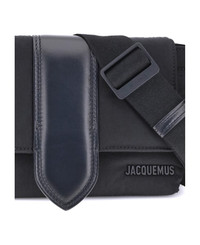 The jacquemus nylon bambino shoulder bag reinterprets the messenger style with a contemporary and functional twist. crafted from soft nylon, it features a leather handle and a magnetic flap with a leather tab, which hides a zip closure for added security. inside, it offers a padded laptop pocket and a leather card slot, while the back features a patch pocket and a zip pocket. the adjustable and removable technical grosgrain shoulder strap and matte black metal hardware complete the design, making it ideal for everyday use with a bold, urban style. Composition: 100% % Nylon Made in: Italy Size and fit: - W 30 x H 38.5 x D 15 cm Model number: BAM00373AW00424990