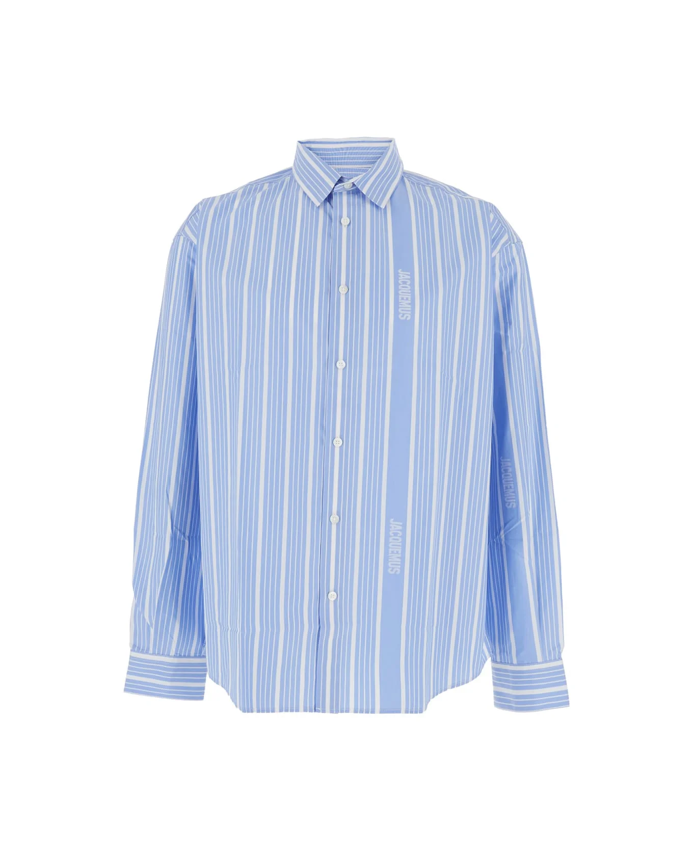 'simon' Light Blue Shirt With All-over Stripe Motif And Logo Lettering In Cotton Man