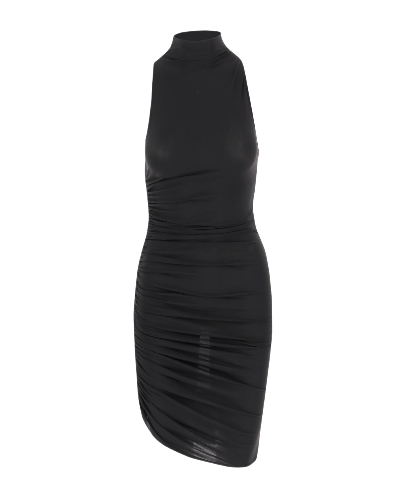 Short dress made of soft stretch jersey Sleeveless Side zipper Gathered and draped side seams Back button drop closure Asymmetrical hem Black Made in Portugal Composition: 75% acetate, 20% polyamide, 5% elastane Made in: Portugal Color: Black Size and fit: - This piece fits true to size. We recommend you get your regular size - Model is 1,75m / 5ft 8in wearing size S Model number: DRW00731AW00211990