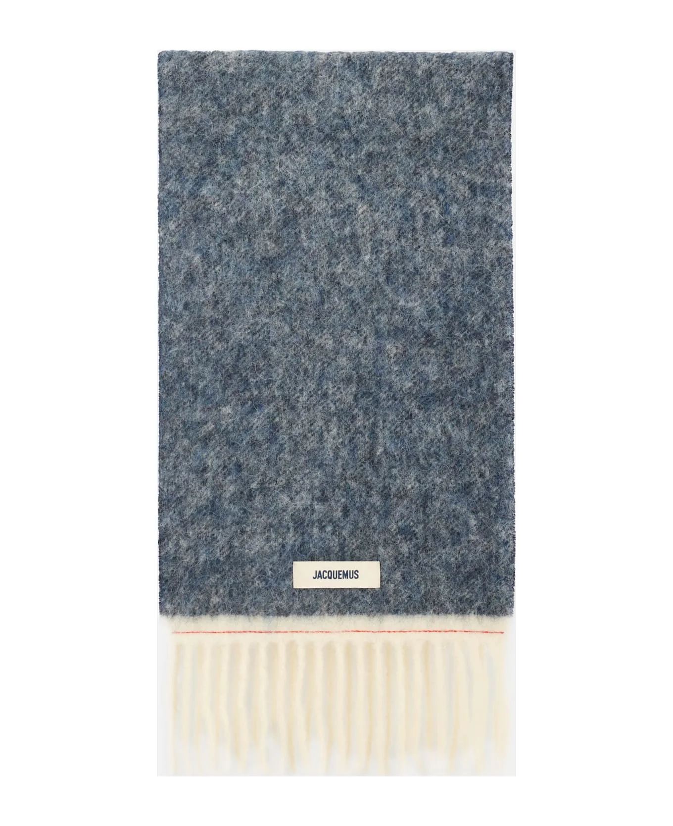Long wool blend scarf with fringe, embroidered grosgrain logo, blue. Made in Italy. Composition: 28% Mohair, 28% Alpaca, 24% Wool, 20% Polyamide Made in: Italy Color: BLUE Model number: ACU00572BOT40323FU