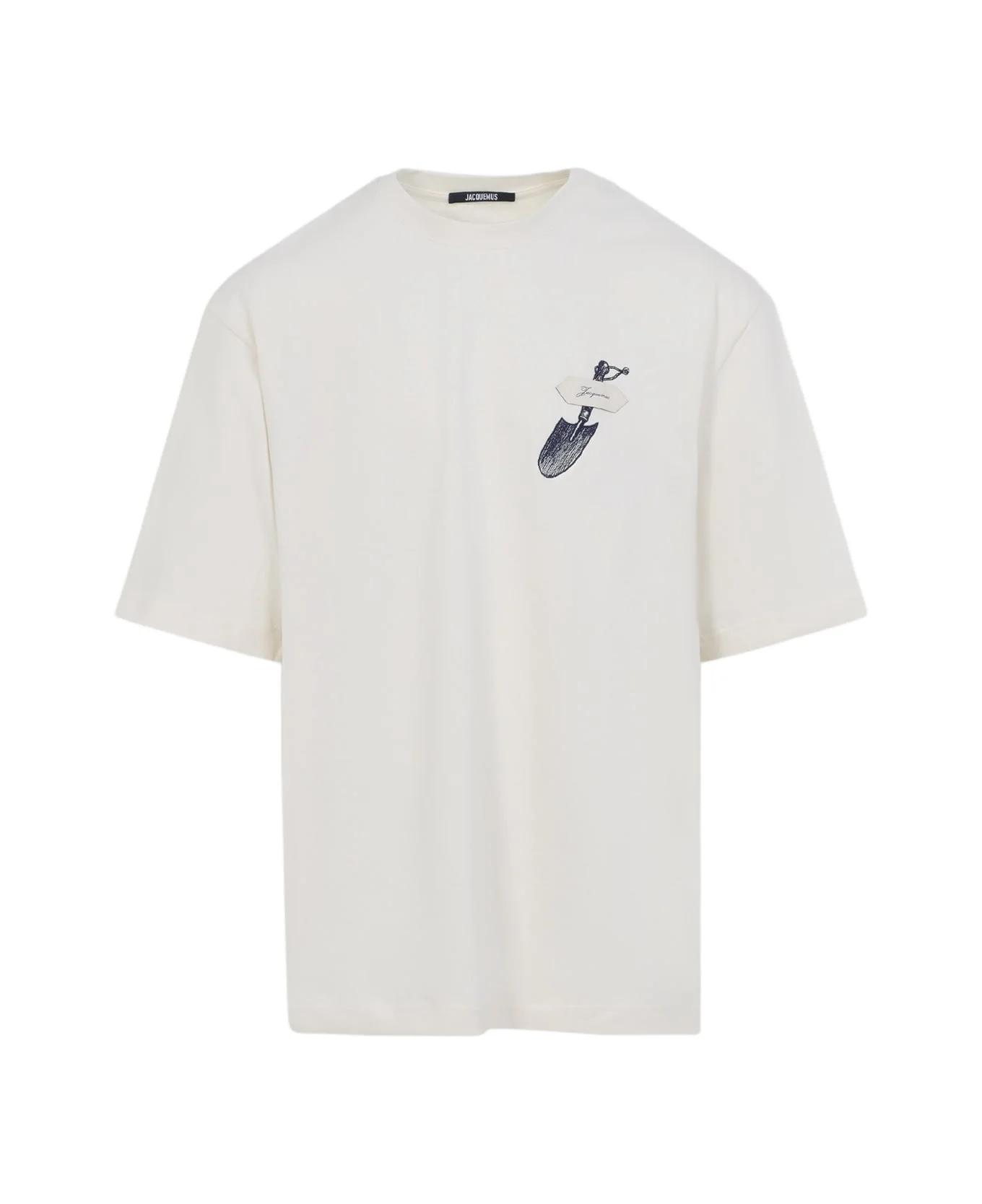 Jacquemus The Pelle Ivory Cotton T-shirt. Crafted from ivory cotton, featuring a crewneck, a graphic print and branded label detail on the chest, dropped shoulders, short sleeves, and a straight hem. Made in: Portugal Color: Nz Embroidered Shovel Model number: TSM00623AJ002261NZ