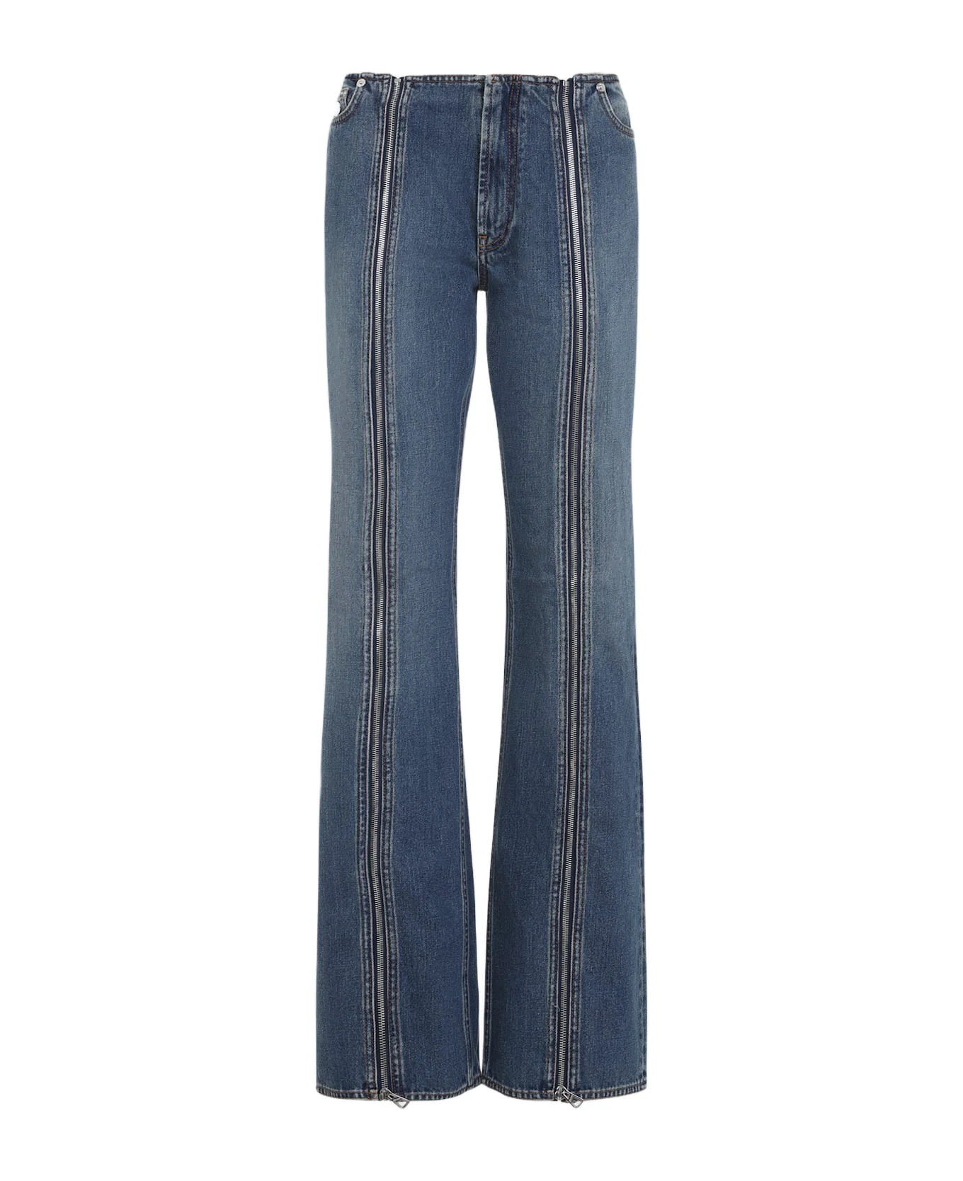 Jean Paul Gaultier Front Zipped Blue Cotton Jeans. Crafted from vintage blue cotton denim, waistband-less construction, 5-pocket design, front fly-zip fastening, zip fastening running down the front of the legs, back horizontal belt loop, straight leg. Color: Vintageblue Model number: 2504WTR031D0255757