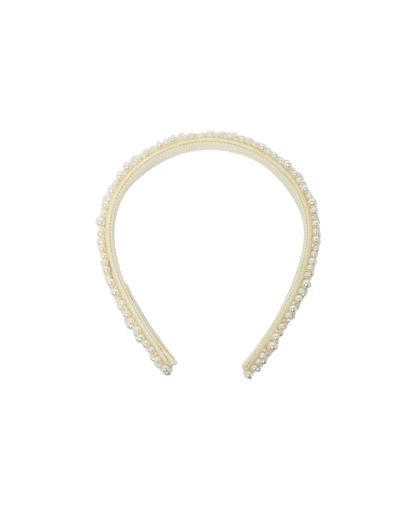 white pearl pearl detailing thin band grosgrain ribbon trim Pearls should be the last thing that you put on in the morning and the first thing you take off at night. Avoid contact with perfumes or creams, and simply wipe with a soft cloth to clean. Made in: United States of America Color: WHITE Model number: 76BB8PEARL