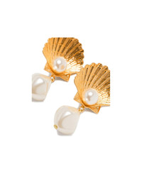 gold-tone pearl embellishment shell design These earrings come as a pair. Made in: Bangladesh Color: GOLD Size and fit: - height: 4.1 centimetres, weight (single earring): 6.0 grams, width: 2.2 centimetres Model number: 76RB106PEARL