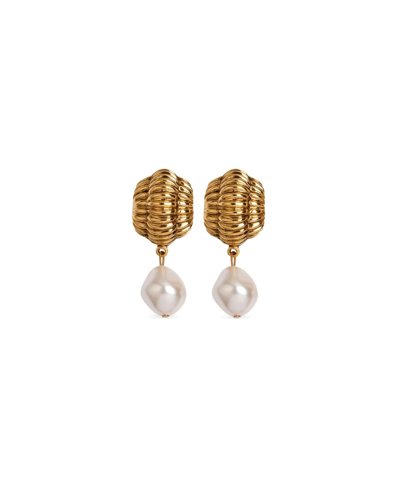 gold-tone drop design post-back fastening for pierced ears These earrings come as a pair. Made in: United States of America Color: GOLD Model number: 111RB117PEARL