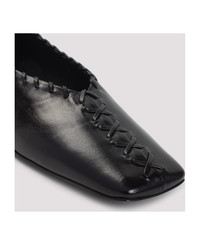 Jil Sander Black Goat Leather Ballerina. Pure black goat leather ballerina, squared toe, top tonal strap, slip-on style, gold-tone metallic ankle strap, tonal sole, flat design. Made in: Italy Color: Black Gold Model number: J15WZ0009P4864002
