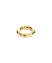 Jil Sander Gold Brass Ring. Crafted from gold-toned brass, it features irregular surfaces and the logo engraved on the inner side. Made in: Italy Color: Gold Model number: J11UQ0023P4877715