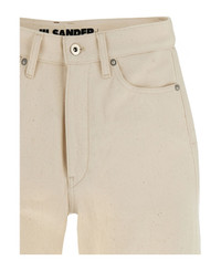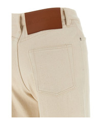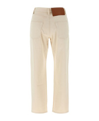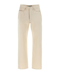 High waist Japanese raw denim jeans with crop leg, zip and front button closure, pockets, and back leather logo tag. Composition: 100% cotton Made in: Japan Color: Beige Size and fit: - Slim fit Model number: J40KA0243J46545280