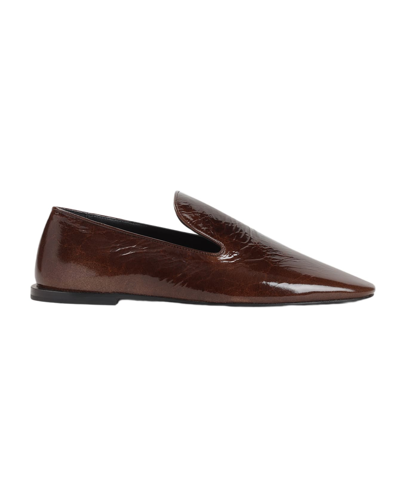 Jil Sander Dark Earth Brown Goat Leather Loafer. Pure dark earth brown goat leather loafer, squared toe, slip-on style, black sole, patent design. Made in: Italy Color: Dark Earth Model number: J15WR0028P8297205
