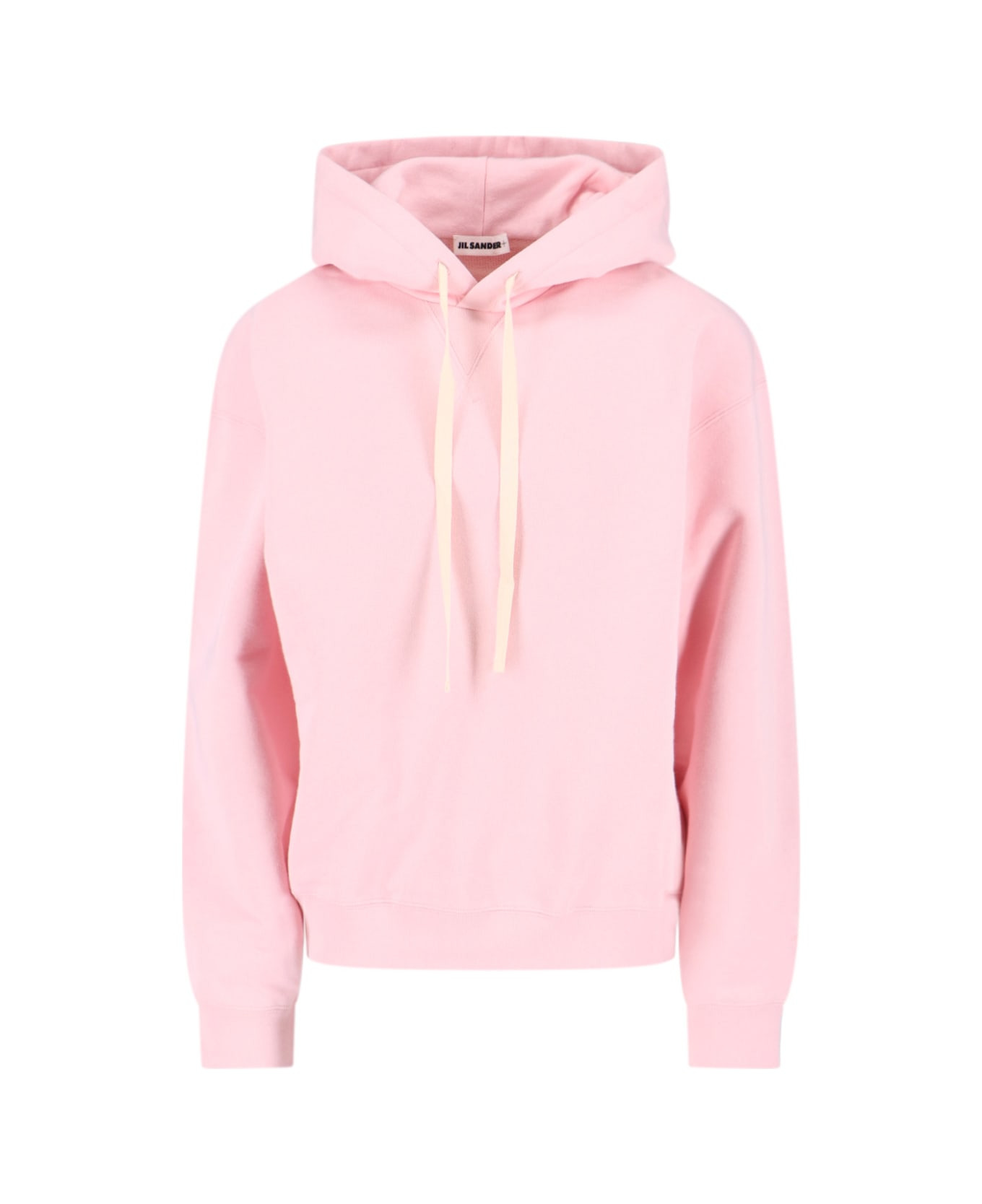 Jil Sander logo hoodie in pink cotton with drawstring, dropped shoulders, logo embroidery on the sleeve, ribbed trim, straight hem. Composition: 100% Cotton Made in: Italy Color: Pink Size and fit: - Vestibilita morbida Model number: J40GU0121J20039664