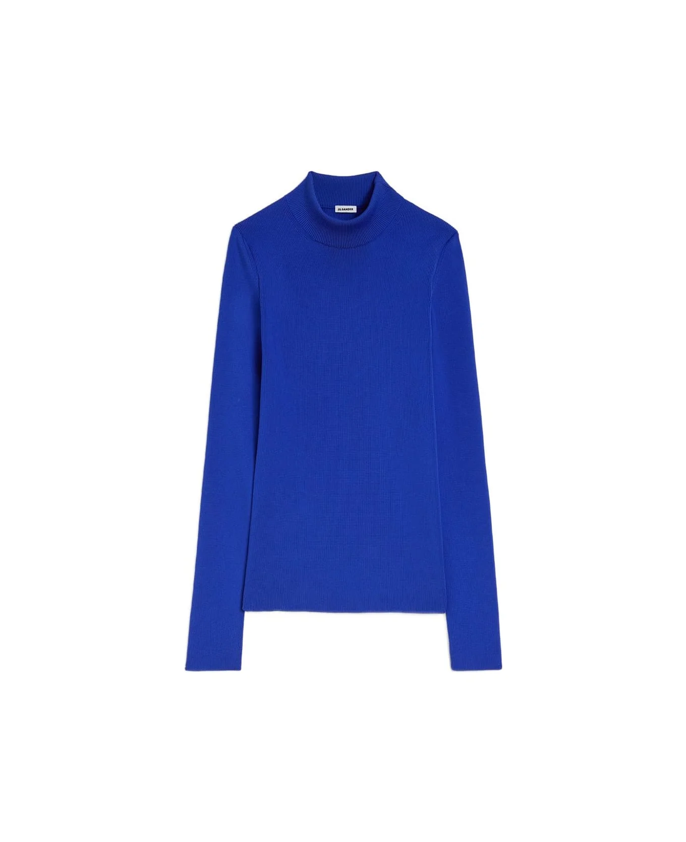 blue mock neck long sleeves ribbed knit Composition: 100% Polyester Made in: Italy Color: Blue Model number: J03GP0190J19164427