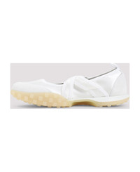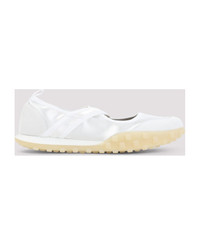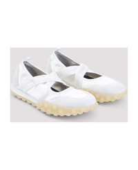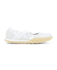 Jil Sander Moon White Polyamide Ballerinas. Crafted from white satin and suede leather, featuring a round toe, two crossed straps on the top, a pull-tab on the back, a leather insole, and a rubber pebble outsole. Made in: Italy Color: Optic White Model number: J15WS0039P7607100