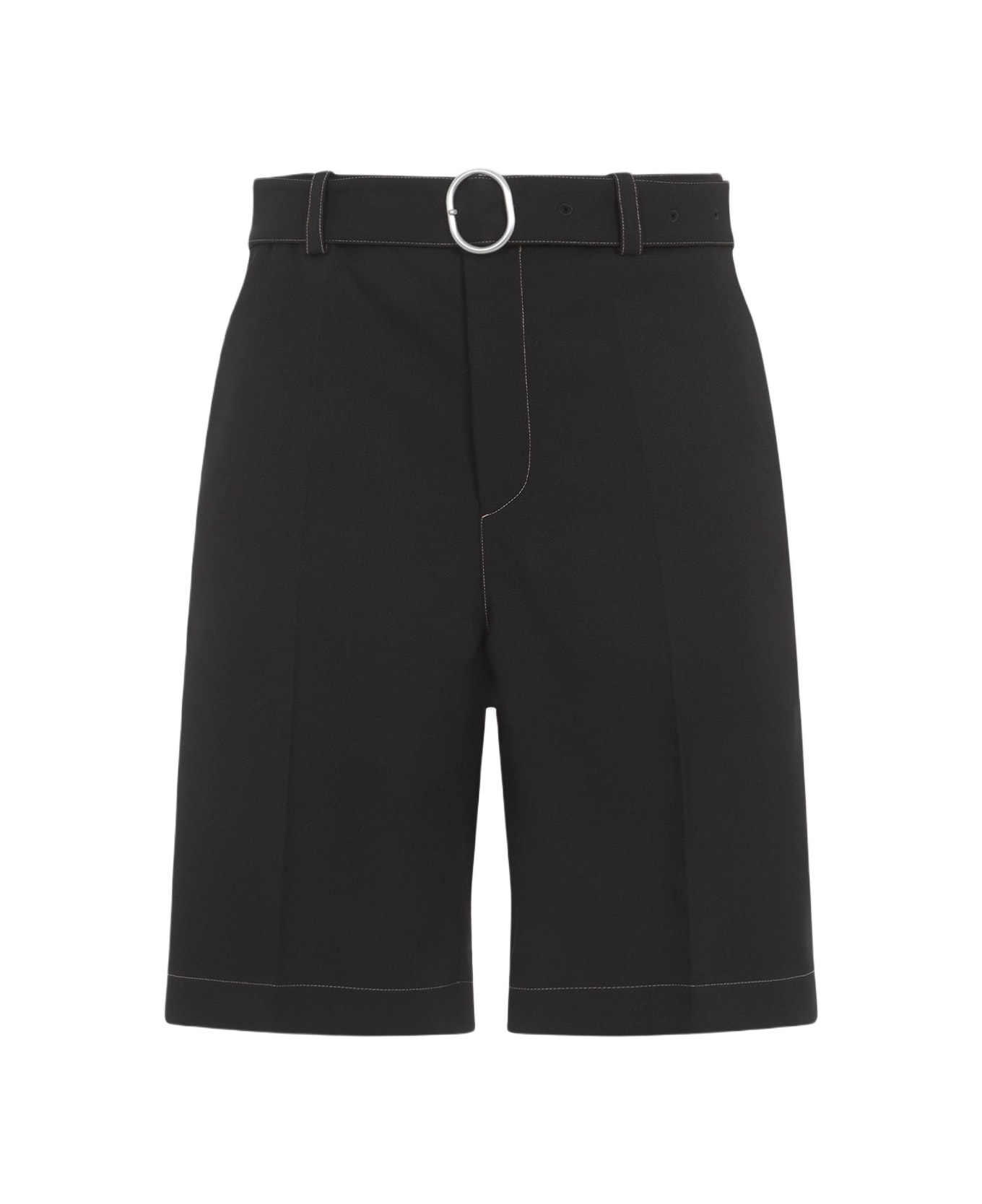 Jil Sander Black Polyester Shorts. Crafted from black tech fabric, white contrasting stitching, belt loops, tonal belt with metal round buckle, front button and fly-zip closure, side pockets, two patch pockets, straight hem. Made in: Italy Color: Black Model number: J22KA0274J70001001