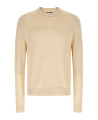 Hemp and silk blend sweater with coarse knit, crew neck, long sleeves with cuffs and dropped shoulder. Composition: 50% hemp 50% silk Made in: Italy Color: Beige Size and fit: - Relaxed fit Model number: J47GP0200J15472102