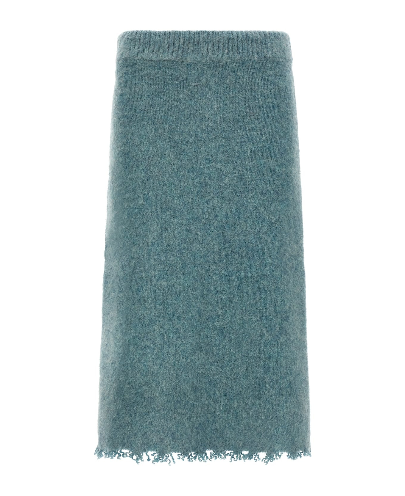 Midi skirt in brushed knit Shetland wool with slightly high elastic waistband, raw cut hem. Composition: 100% wool Made in: Italy Color: Light Blue Size and fit: - true to size fit - GERMAN size Model number: J40MA0173J14792441