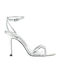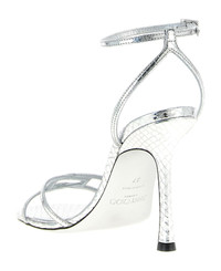 '1998 Leo' candy paper-effect leather sandals with adjustable ankle strap, heel, leather sole. Composition: 86% lh 5% me 5% sa 4% pt Made in: Italy Color: Silver Size and fit: - EU WOMAN - Heel: 10 cm Model number: 1998LEO100WAPSILVER