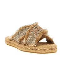 'Aciel' sandals in woven lurex fabric, fringed straps and tone-on-tone embroidered logo, square toe, rope midsole, rubber sole. Composition: 100% textile Made in: Spain Color: Gold Size and fit: - EU WOMEN Model number: ACIELSANDALFLATGUBGOLDDARKCAPPUCCINO