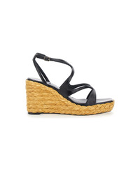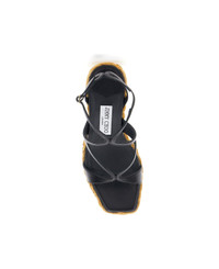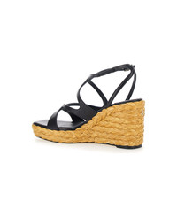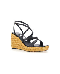 'ayla' Black Wedges With Leather Ankle Strap And High Heel In Leather And Fabric Woman