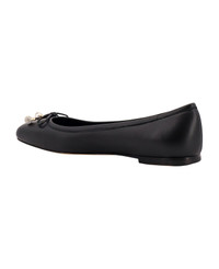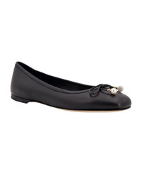 Elme Flat Black Nappa Leather Flats with Pearl Embellishment