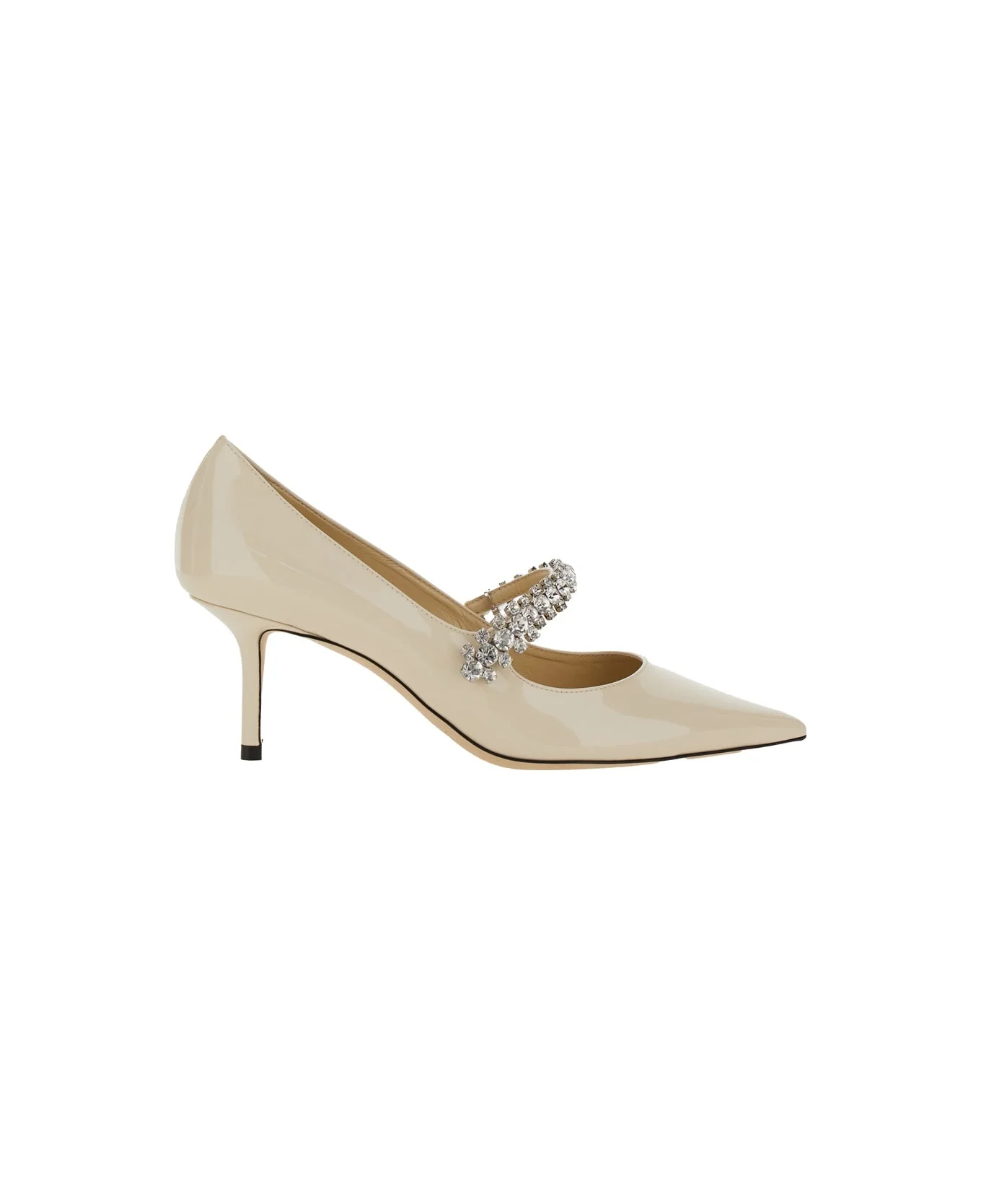 Pumps White Pointed toe Crystal embellishments High cone heel Patent leather blend Heel height: 6,5 cm Composition: 100% Calf Made in: Italy Color: White Model number: BINGPUMP65PATLINEN