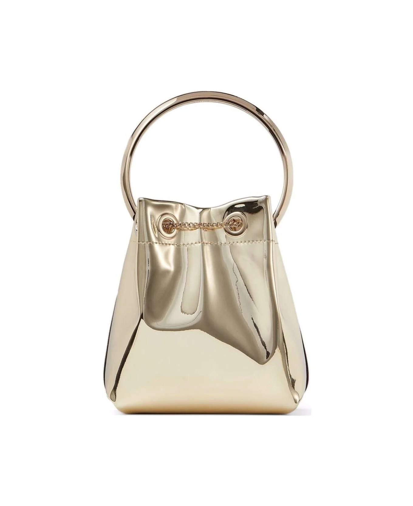 'bon Bon' Mini Gold-tone Handbag With Metal Bracelet Handle In Mirror Fabbric Woman