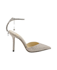 Crystal pumps from Jimmy Choo featuring pointed toe, crystal embellishments, ankle closure and stiletto heel. Composition: _cover, 100% Tex Sole, 100% Le Made in: Italy Color: BUTTERMILK/CRYSTAL Model number: SAEDA100GZY122021