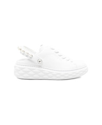 Faux pearl-embellished leather slingback sneakers White