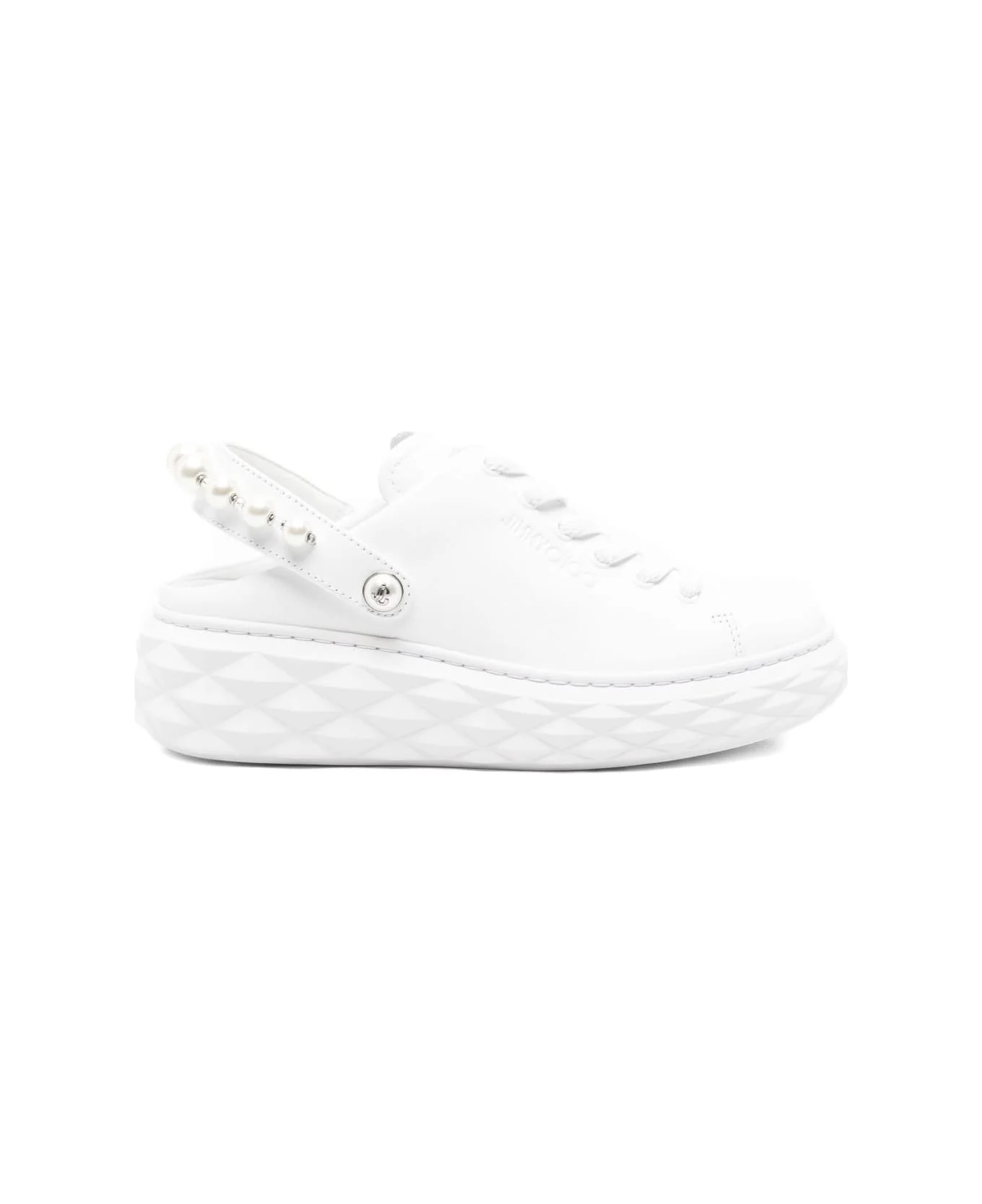 white leather upper faux-pearl embellishment slingback strap lace-up closure geometric platform sole Composition: Outer: Faux Pearl, 100% , Calf Leather, 100% Made in: Vietnam Color: White Size and fit: - Heel 5 cm - Model number: DIAMONDMAXI/PEARLNQKWHITE/WHITE