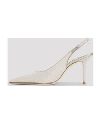 Jimmy Choo Golden Love85 Caviar Glitter Pumps. Golden-tone Glitter leather upper, pointed toeline, strap with buckle fastening on back, tonal covered heels. Leather sole and insole, regular fit. Made in: Italy Color: Light Soft Gold Size and fit: - Heel Hight: 8,5cm Model number: LOVESB85GQILIGHT