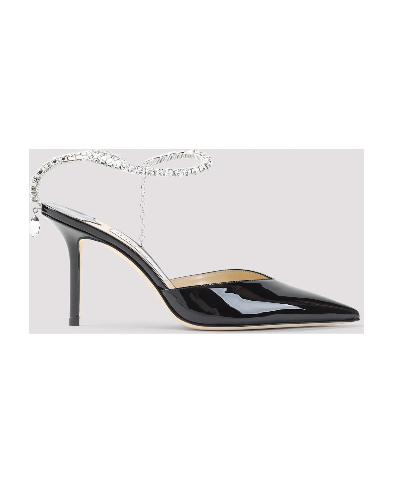 Saeda 85 Black Patent Leather Pumps with Crystal Embellishment