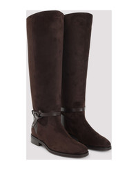 Lawton Knee Boot Flat Chocolate Suede and Calf Leather Knee High Boots