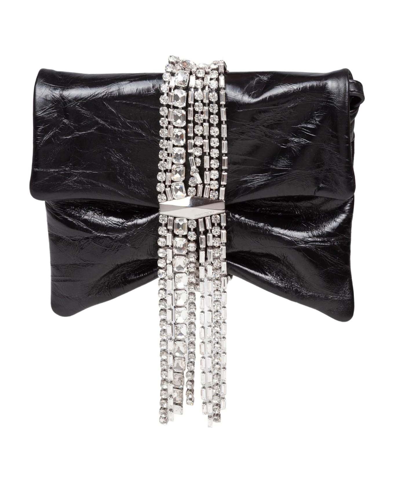 Clutch bag in metallic leather with a vintage effect black color bracelet with hanging crystals vintage metallic leather dimensions: width 20. 5 cm height 16 cm depth 4 cm adjustable shoulder strap length of the shoulder strap: 20. 5 cm composition 100% leather made in italy Made in: Italy Color: Black/Silver Model number: ZANDRASHOULDER