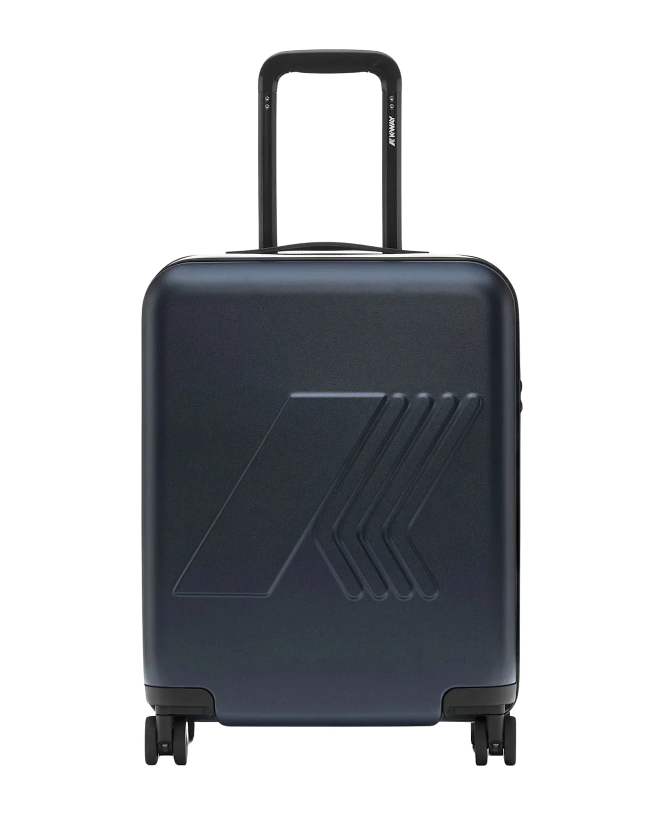 Trolley Eudoxie Logo - K-Way - color blue - Polycarbonate shell - Polyester lining with all-over printed logo - Removable divider panel with mesh inserts - Small zippered pocket - 4 360° swivel wheels - Extendable aluminum handle - Combination locking system with TSA - Luggage tag tag system - Embossed K-Way monogram tone on tone - Measurements: 55 x 38 x 22 cm - Capacity: 39 L - Weight: 2. 9 Kg Made in: China Color: Blue Depth Model number: K81372W|097K89