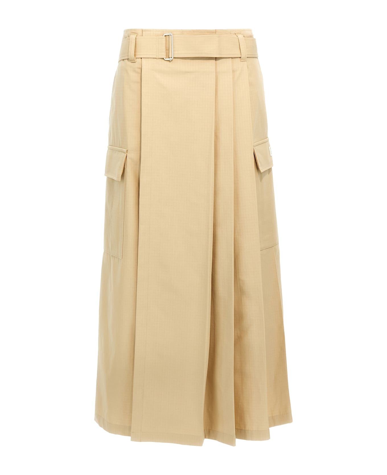Long 'Cargo' skirt in ripstop cotton canvas with pleats, belt loops at the waist, wallet closure, side logo patch. Composition: 100% cotton Made in: Bulgaria Color: Beige Size and fit: - True to size fit Model number: FF52JU3039DL11