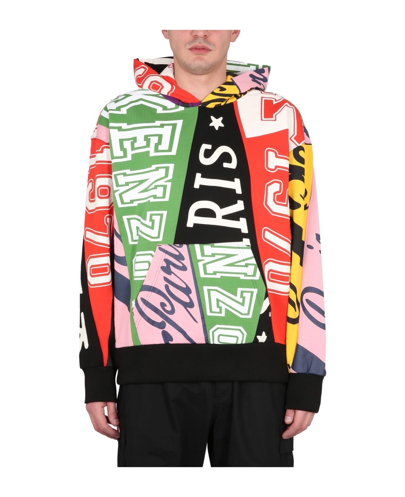 Printed Patchwork Stretch-Cotton Jersey Hoodie