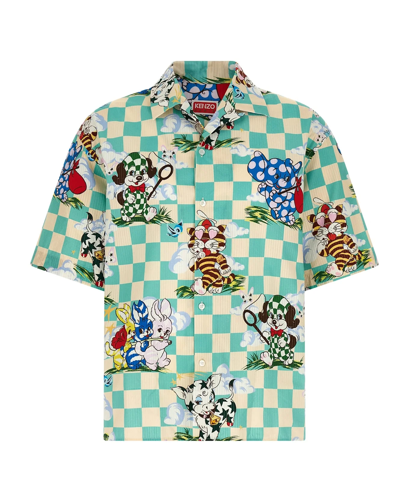 'KENZO Cartoon' hawaiian short sleeve shirt in cotton seersucker