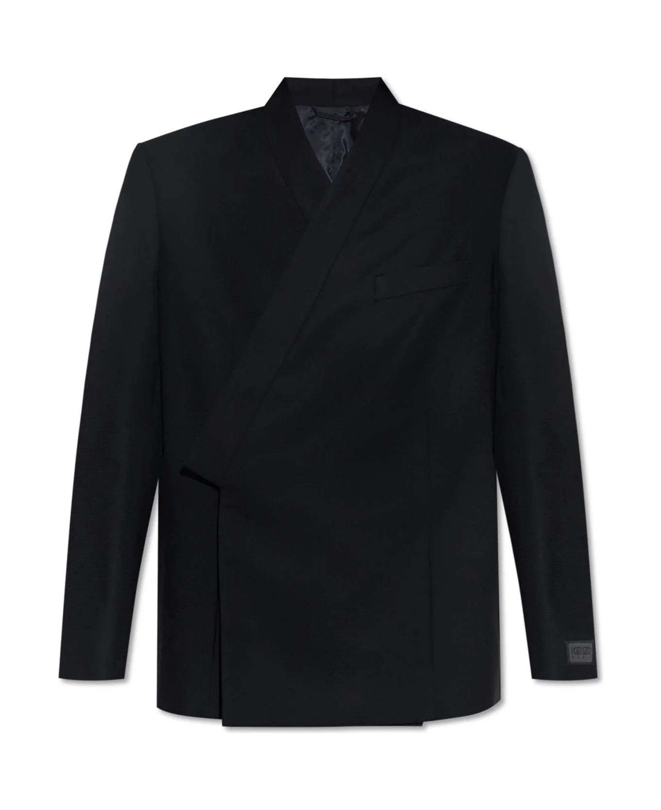Indulge in the avant-garde sophistication of the Kenzo Wool Blazer, a masterful reinterpretation of classic tailoring for the discerning woman. Crafted from fine, high-quality wool with a subtle geometric texture, this blazer radiates understated luxury, its matte finish lending a contemporary edge while impeccably retaining its elegant structure. The silhouette is gently oversized, featuring a distinctive boxy shoulder line and a sleek, lapel-free neckline inspired by minimalist design. An asymmetric, wrap-front closure elevates the architectural form, striking the perfect balance between innovation and refinement. A single, discreet chest pocket enhances the look's modernity, while the elongated straight sleeves and lack of visible side pockets underscore its sophisticated restraint. Imbued with Kenzo's hallmark fusion of artistry and heritage, this blazer represents a statement of creative direction under Nigo, blending luxury with bold originality for collectors and connoisseurs alike. Why choose this product? Exquisite wool construction with refined geometric weaving Asymmetric wrap closure for a distinctive aesthetic Minimalist, lapel-free neckline for modern appeal Iconic Kenzo design heritage, now redefined by Nigo Perfect fusion of innovative fashion and timeless elegance Composition: 100% Wool Made in: Portugal Color: BLACK Model number: FF62VE2659ID79