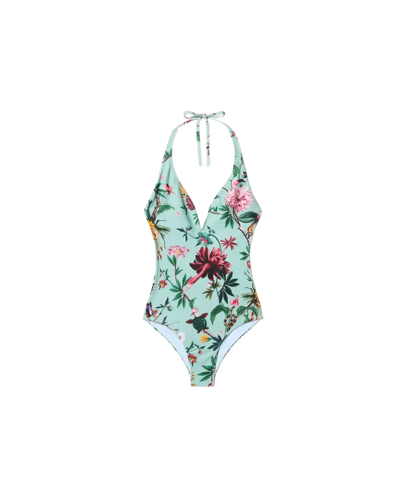 light blue floral print halterneck v-neck open back Be mindful to try on swimwear over your own garments. Made in: Italy Color: BLUE/RED Model number: SWI0036LYC001ZOF0