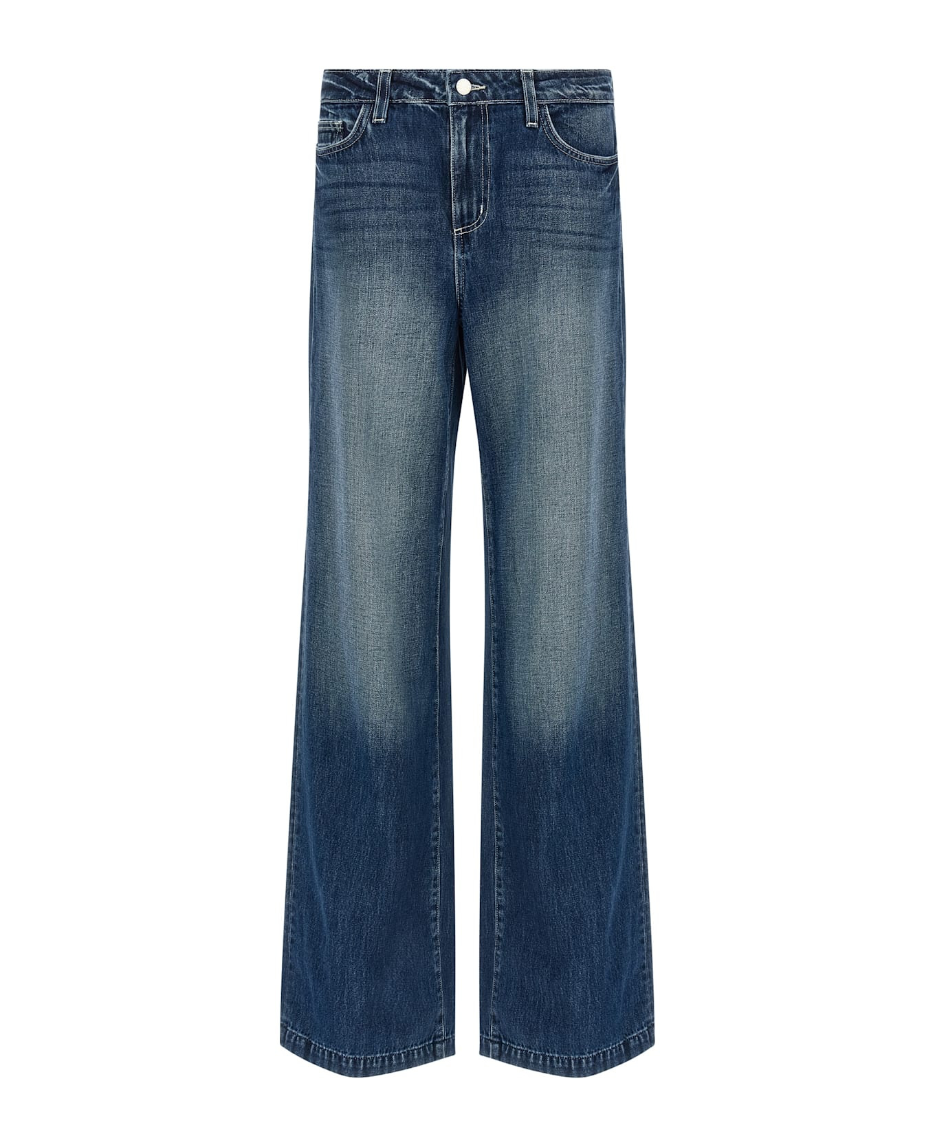 'Clayton' faded dark wash cotton denim jeans, high waist, wide straight leg, zip and front button closure, five pockets. Composition: 100% cotton Made in: United States of America Color: Blue Size and fit: - true to size fit Model number: 2790YROOREL