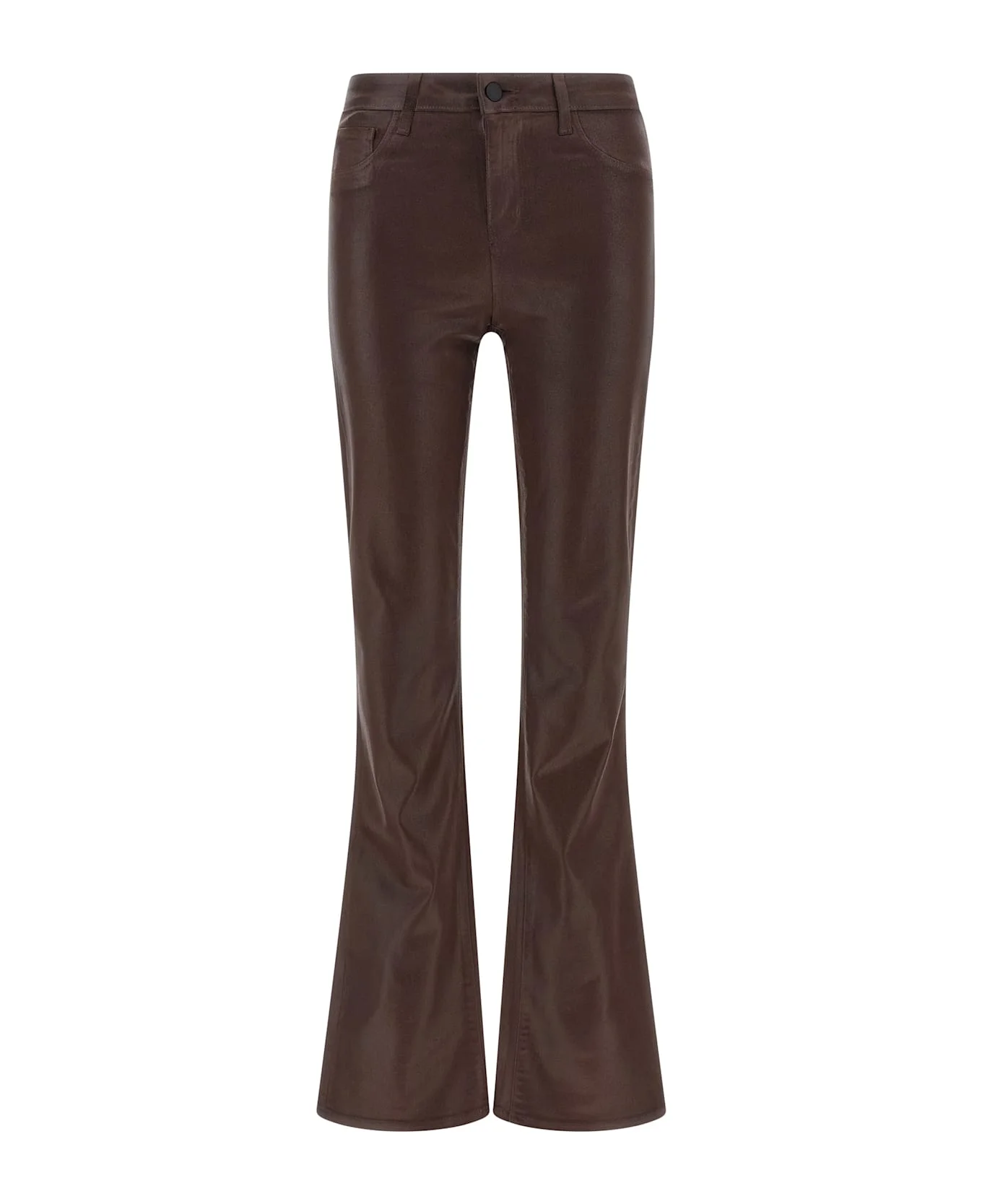 'Selma' jeans in coated stretch denim with high waist baby silhouette, flared leg, zip and button closure, trompe l'oeil front pockets, functional back pockets. Composition: 86% co, 11% ea 3% sp Made in: United States of America Color: Brown Size and fit: - true to size fit Model number: 2700PDDCCHCT