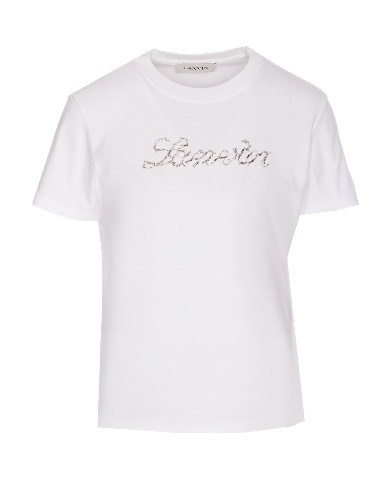 Lanvin white t-shirt, crewneck, frontal application logo Composition: 100% Cotton Made in: Italy Color: White Size and fit: - US SIZE Model number: TS9030J17601